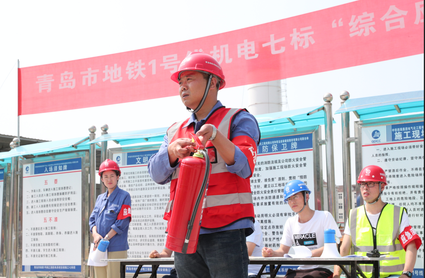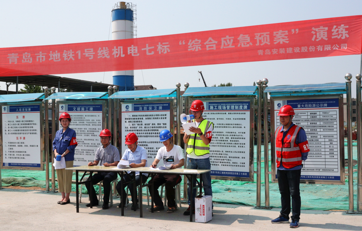 為扎實開展2019年“安全生產(chǎn)月”活動,牢固樹立“生命至上,安全生產(chǎn)”理念,全面提升安全生產(chǎn)事故應(yīng)急救援處置能力,2019年6月14日下午,我公司聯(lián)合中鐵四局地鐵項目部在青島市地鐵1號線工程機電系統(tǒng)施工七標段遵義路站站區(qū)開展了一次以“防風險 除隱患 遏事故”為主題的安全生產(chǎn)事故應(yīng)急救援綜合演練活動,公司黨委書記、常務(wù)副總經(jīng)理張衛(wèi)財出席活動,安環(huán)部主任馬世革、中鐵四局、監(jiān)理公司、各分公司負責安全生產(chǎn)的副經(jīng)理、專職安全員及安環(huán)部全體人員共計80余人到現(xiàn)場觀摩演練。中鐵四局青島地鐵1號線機電七標項目經(jīng)理劉洋擔任演練總指揮。公司商務(wù)經(jīng)理姜曉紅擔任主持人。