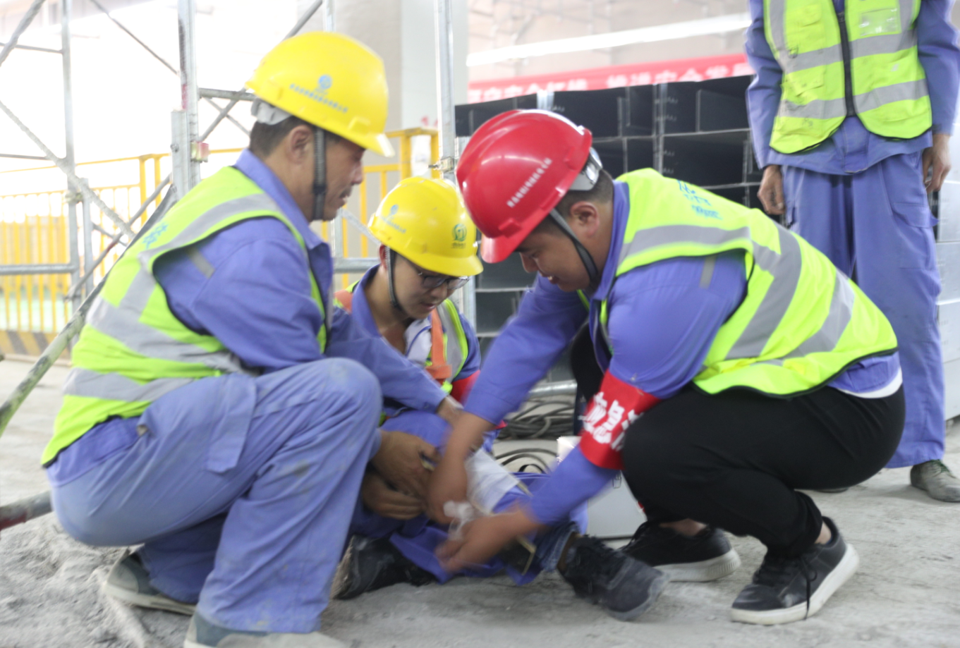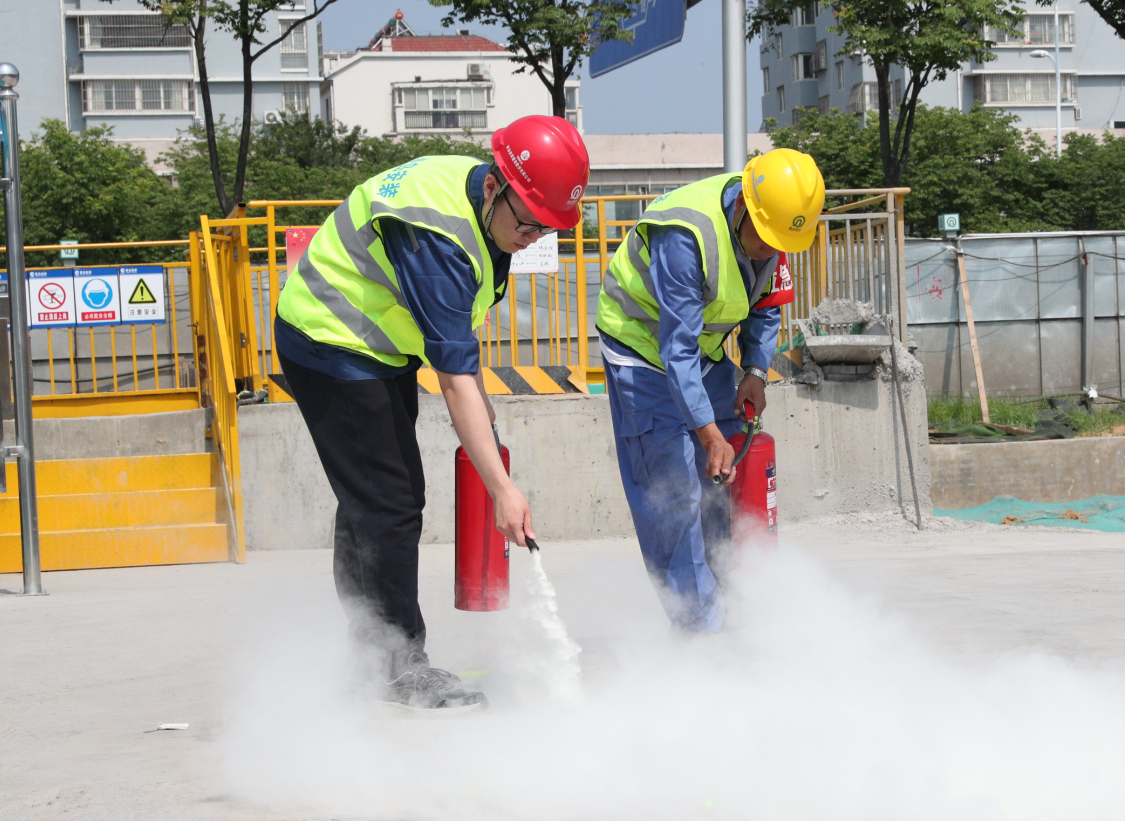 下午2點整,姜曉紅經(jīng)理講解了應(yīng)急演練的積極意義及具體方案,公司地鐵項目部安全總監(jiān)王正強講解滅火器材使用方法和消防疏散注意事項及安全帶的正確使用方法,并現(xiàn)場隨機邀請了兩名工人進行滅火器的使用演練。2點20分,綜合應(yīng)急救援演練活動總指揮劉洋同志宣布演練正式開始,演練背景:1、由于夏季多雨,車站發(fā)生雨水倒灌;2、施工現(xiàn)場電焊作業(yè)的焊渣引燃可燃材料導致火災(zāi)。隨即展開防汛、消防救援活動,經(jīng)過水泵排水、砂袋擋水、自救互救、滅后器滅后、消防水滅火、人員疏散逃生、火勢得到控制,險情被成功化解。演練主要展現(xiàn)現(xiàn)場應(yīng)急響應(yīng)、防汛、滅火、人員疏散逃生、傷員急救轉(zhuǎn)移五個環(huán)節(jié),分應(yīng)急響應(yīng)、信息上報、防汛、滅火器滅火、消防水滅火、傷員救治與轉(zhuǎn)移、人員疏散七個場景演練,鍛煉搶險救援隊伍,提高先期處置能力。