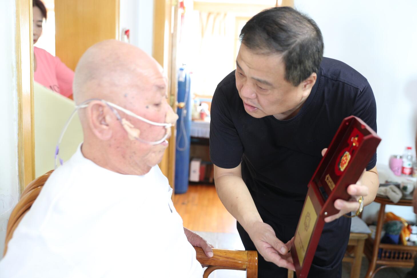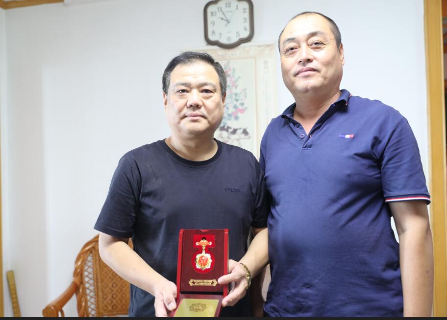 9月23日上午,青島安裝建設(shè)股份有限公司紀(jì)委書記、工會主席李金通與相關(guān)同志帶著上級領(lǐng)導(dǎo)部門和公司領(lǐng)導(dǎo)的重托,將這枚閃耀著光輝象征與最高榮譽的獎?wù)滤偷搅艘娮C共和國誕生和發(fā)展奇跡并為之做出突出貢獻(xiàn)的全國勞模賀再奎及家人手中。感謝他為祖國和人民的無私奉獻(xiàn),更感謝他為青島安裝公司帶來的無尚榮耀。